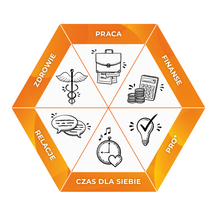 Czy wiesz, że aby osiągnąć w życiu szczęście, trzeba zachować równowagę pomiędzy pewnymi jego obszarami? Dlatego też stworzyliśmy koncepcję Heksagonu Szczęścia. Heksagon Szczęścia to sześć równoważnych obszarów, na które składają się: praca, finanse, permanentny rozwój osobisty, czas dla siebie, relacje i zdrowie. Każdy z tych obszarów wymaga Twojej uwagi i pracy, bowiem zaniedbanie jednego z nich wpływa negatywnie na pozostałe aspekty Twojego życia, choć nie zawsze jest to widoczne od razu.